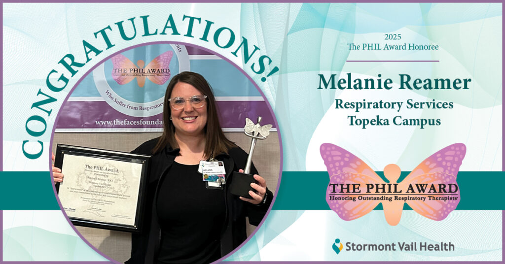 Stormont Vail Health is proud to announce our first recipients of the PHIL Award® (Pulmonary Health and Illnesses of the Lungs), Registered Respiratory Therapists (RRTs) Melanie Reamer and Michelle Budreau.
